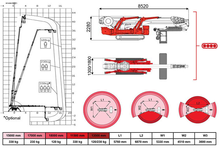 XTJ43蜘蛛式升降機工作范圍圖